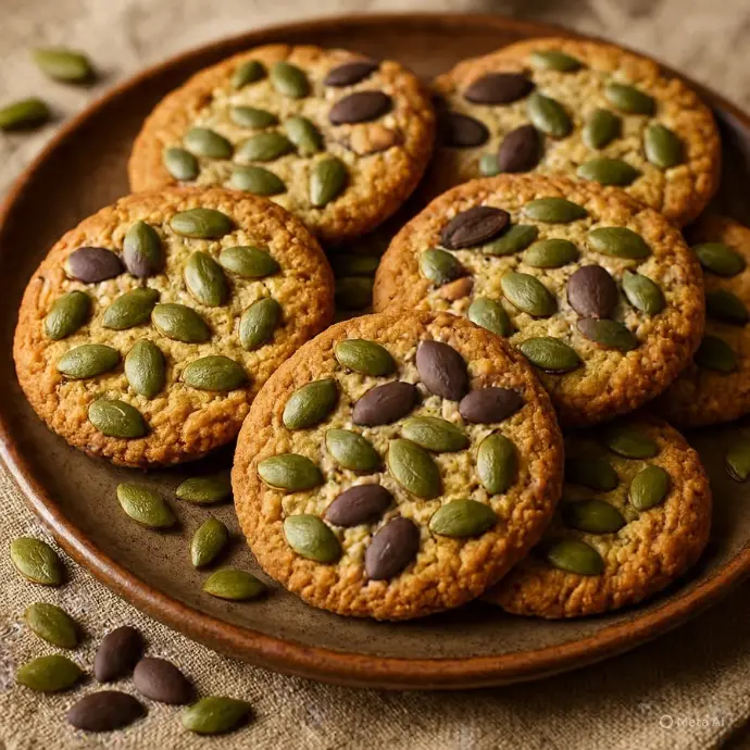 Hechas con amor. Disfruta el sabor auténtico de nuestras galletas artesanales, repletas de pepitas de calabaza para un toque nutritivo.
